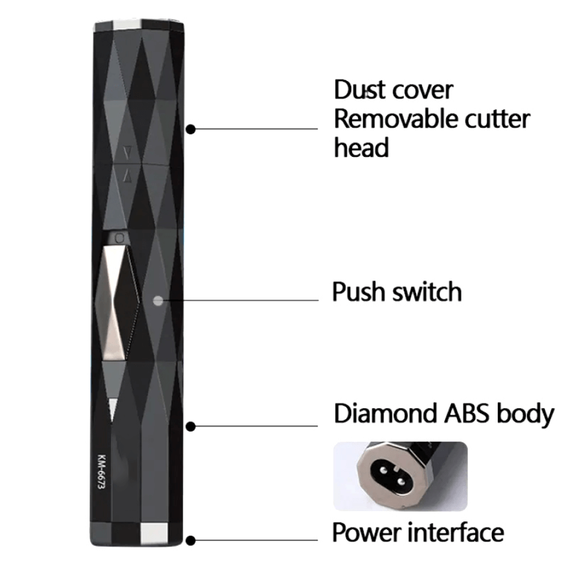 Trimmer, nose hair, sideburns hair trimmer, instruction manual, charging cable, cleaning brush