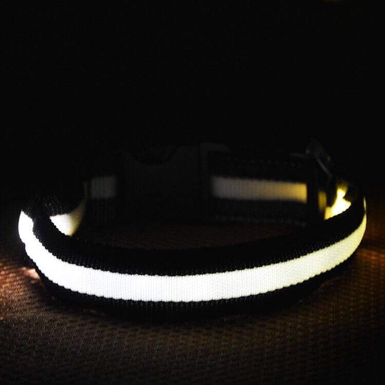 2. Nylon LED lighting dog safety collar, easy to carry and take off through the buckle. Very suitable for walking and having fun at night. Glowing in the dark not only makes your cute animals unique, but also a great way to protect your pets and their safety. Pass CE, ROHS, EN471 waterproof, the detachable electronic cleaning part of the product is suitable for dark environment or dog walking at night, outdoors and farting. Through bright fiber optic lights, it warns and shows personality at the same time. Fashion design mode, day or night, when you turn it on Suitable for pets when the light-emitting function is turned off